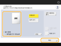 1 | 용지 덱의 용지 크기 설정이 용지 덱에 넣을 용지 크기와 반드시 일치하도록 합니다. |