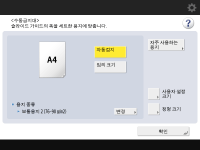 용지가 제대로 적재된 경우에도 일부 작은 표준 크기가 제대로 감지되지 않을 수 있습니다. 이러한 경우 <정형 크기>를 누르고 용지 크기를 선택하십시오.