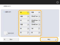 2 | 용지 크기를 선택하고 <확인>를 누릅니다. |