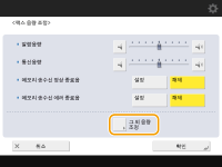 음량을 조정하거나 설정을 지정하고 <확인>를 누릅니다.