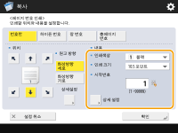 <부수번호 인쇄 옵션 설정>을 <설정>으로 설정하는 경우 지정할 수 있는 설정이 다음과 같이 변경됩니다. <부수번호 인쇄 옵션 설정>