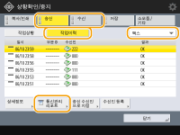1 | <송신> 또는 <수신> <작업이력>를 누릅니다. |