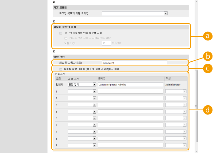 Active Directory 서버를 사용하는 경우의 [조건] 설정
