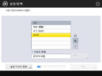 설정 가이드를 사용하지 않는 경우, 1단계에서 <설정 가이드 종료>를 누릅니다. 설정 가이드를 마친 후 (설정/등록)을 눌러 나중에 각 설정을 변경할 수 있습니다(<토너 교반> 제외). |