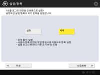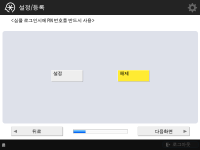 다음 경우에는 설정 가이드를 시작할 수 없습니다.사용자 인증 혹은 부서 ID 인증이 설정된 경우 부서 ID 인증이 설정된 경우 카드 인증이 실행되는 경우 |