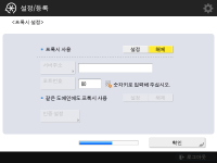 프록시를 사용하기 위한 필수 설정을 지정합니다. ![]() ![]() 프록시를 사용하려면 <설정>를 누르고, <서버주소> 와 <포트번호>를 눌러 각 값을 입력한 후, <확인>를 누릅니다. <같은 도메인에도 프록시 사용>을 <설정>에 설정한 경우, <인증 설정>를 눌러 프록시 인증 설정을 지정합니다. 프록시 설정에 대한 정보는 프록시 설정를 참조하십시오. | |