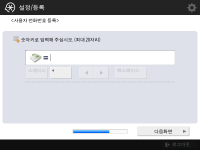 팩스 기능을 사용하기 위한 필수 설정을 지정합니다. ![]() (시스템 옵션)를 팩스로 송신하는 데 필요한 옵션 제품이 설치되어 있지 않으면 11단계로 가십시오. 선택 화면이 나타나면 국가/지역을 선택하고 <다음화면>를 누릅니다. ![]() ![]() 팩스 번호를 입력하고 <다음화면>를 누릅니다. 팩스 설정에 대한 정보는 팩스 회선 설정를 참조하십시오. ![]() ![]() <설정>를 누르고, 사용자 이름을 입력한 후 <다음화면>를 누릅니다. ![]() ![]() 회선 종류를 선택하고 <확인>를 누릅니다. | |