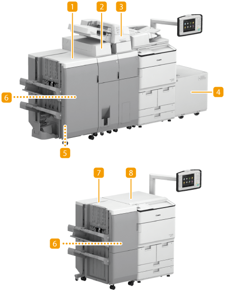 有關本機上可以安裝的選購配件組合資訊,請聯絡當地的 Canon 授權經銷商。 端視本機安裝的選購設備組態而定,部分設定可能無法顯示。 |