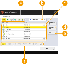 首個字母按鈕選擇接收者名稱第一個字元的英數按鈕。按 <全部> 以顯示所有註冊的接收者。