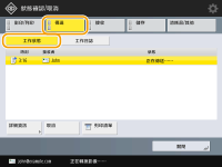 使用個人認證管理時,您可在 <狀態確認> 畫面上限制使用者對其他使用者的工作執行作業。<限制存取其他使用者的工作> |
