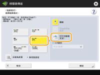 如果選擇 <PDF(OCR)>、<XPS(OCR)> 或 <OOXML(OCR)> 作為檔案格式,並在 <OCR(可搜尋文字)設定> 中將 <智能掃描> 設為 <開啟>,則會偵測原稿方向,並會在傳送前視需要自動旋轉文件。<OCR(可搜尋文字)設定> 如果選擇 <OCR(可搜尋文字)>,您僅能以 <1:1> 或 <Auto> 的縮放倍率進行傳送。 如果選擇 <PDF> 或 <XPS> 作為檔案格式,您可同時設定 <壓縮> 和 <OCR(可搜尋文字)>。在此情況下,「掃描並傳送基本功能」畫面上會將 <PDF(壓縮)> 或 <XPS(壓縮)> 顯示為檔案格式。 如果在 <OOXML> 中選擇 <Word>,您可設為刪除掃描背景影像。您可產生 Word 檔案,以便在沒有不想要影像的情況下進行編輯。<Word檔案中包含背景影像> 如果目前使用 <掃描後儲存> 功能,只有在 <OOXML> 中選擇 <Word> 或在 <PDF> 中選擇 <OCR(歐洲語言)> 時,才能指定 OCR 語言。 |