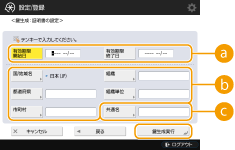 証明書の有効期間の開始日/終了日を入力します。
