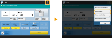 To register a Personal button, you need to log in with personal authentication management. Configuring the Personal Authentication Management Settings If you select <Device Login Authentication Information> for <Information Used for File TX/Browsing Authentication>, a password for a file destination is not stored in a Personal button. <Information Used for File TX/Browsing Authentication> For information on the maximum number of Personal buttons and Shared buttons that can be registered, see Management Functions. Personal buttons cannot be changed to Shared buttons, and vice-versa. To do so, recall the settings and register another button from <Menu>. Press and hold a button to change its name/comment or move/delete it. The same operations (changing the name/comment of a button or moving/deleting a button) can be performed from <Menu> on the <Home> screen. Customizing the <Home> Screen Personal buttons can be shared between multiple devices by synchronizing personalized data. List of Items That Can Be Personalized Settings that can be registered in Personal buttons/Shared buttonsFunctions and settings that can be registered in Personal buttons/Shared buttons are indicated below. Settings that can be registered in <Favorite Settings> for the <Copy> function Reducing Copying Operations <Fax> function settings of the machine Basic Operations for Sending Faxes Settings that can be registered in <Favorite Settings> for the <Scan and Send> function Useful Scanning Functions Settings that can be registered in <Favorite Settings> for the <Scan and Store> function Setting Screen and Operations for Scanning to Save Save locations for the <Scan and Store> and <Access Stored Files> functions Using Storage Space Shortcuts to the Basic Features screen for the <Fax/I-Fax Inbox> function Access to a server and the login password can be registered to Personal buttons/Shared buttons. This is convenient for skipping password entry when recalling the registered button. If you want to set password in the settings stored in the registered button, as you often import settings in a Personal button or Shared button to another machine and you want to prevent users from pretending to be other users, exclude a password when registering. Importing/exporting the registered buttonsYou can import and export the registered Personal/Shared buttons from the Remote UI. Importing/Exporting All Settings The Personal buttons/Shared buttons of imageRUNNER ADVANCE series devices that have the Quick Menu function can be imported/exported as Personal buttons/Shared buttons. |