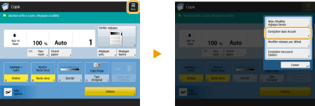 Appuyez sur   <Enregistrer dans Accueil> lorsque les réglages sont terminés.
