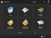 Premere visualizzato nella schermata <Home> e nella schermata Funzioni di base per personalizzare la schermata, ad esempio ridisponendo i pulsanti o creando un tasto di scelta rapida. Personalizzazione del pannello digitale![]() È possibile modificare le impostazioni relative alla visualizzazione della schermata, come ad esempio quale schermata appare subito dopo l'accensione della macchina e la visualizzazione di un messaggio relativo alla quantità residua di carta e toner. <Impostazioni visualizzazione> È possibile impostare la visualizzazione della schermata dopo che è trascorsa una certa quantità di tempo senza operazioni. <Funzione dopo ripristino automatico> |