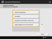 È possibile modificare i pulsanti di impostazione che vengono visualizzati nelle schermate Funzioni di base (per copia, fax e scansione). È inoltre possibile visualizzare una schermata Funzioni di base diversa, personalizzata per ogni utente che ha effettuato l'accesso.