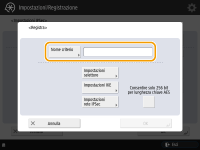 2 | Configurare le impostazioni necessarie. ![]() <Validità>Impostare il periodo di scadenza dell'IPSec SA generato. Assicurarsi di impostare <Interv.> o <Dimensione>. Se si impostano entrambi, viene applicata l'impostazione con il valore raggiunto per primo. <PFS>Se si imposta la funzione Perfect Forward Secrecy (PFS) su <On>, la segretezza del codice di crittografia aumenta, ma la velocità di comunicazione diminuisce. Inoltre, la funzione PFS deve essere abilitata sul dispositivo del peer di comunicazione. <Algoritmo autenticaz./crittografia>Selezionare <Autom.> o <Impostazioni manuali> per impostare come specificare l'algoritmo di autenticazione e crittografia per IKE fase 2. Se si seleziona <Autom.>, l'algoritmo di autenticazione e crittografia ESP viene impostato automaticamente. Se si desidera specificare un determinato metodo di autenticazione, premere <Impostazioni manuali> e selezionare uno dei metodi di autenticazione descritti di seguito.
