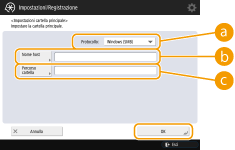 Se <Metodo specifica cartella personale> è impostato su <Registrazione per ogni utente>, registrare una delle seguenti come cartella personale per ciascun utente. Le impostazioni registrate sono le stesse e viene registrata la stessa cartella personale, indipendentemente da dove è configurata l'impostazione.