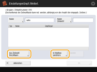 In Zielwahl-Schaltflächen registrierte Ziele können zu einer Gruppe zusammengefasst und als einzelnes Ziel registriert werden. Außerdem können Sie eine Mailbox (temporärer Speicherplatz des Geräts) in einer Gruppe registrieren (