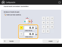Especifique la longitud del lado <X> y del lado <Y>. Pulse <X> o <Y> para introducir la longitud de cada lado con las teclas numéricas.