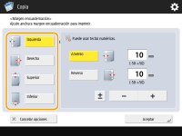 Si introduce un número inferior a 0, el margen se establece en el lado opuesto de la posición indicada en el paso 4. Utilícelo si desea estrechar el ancho del margen al copiar un original que ya tiene márgenes.