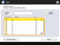 Introduzca un nombre de archivo pulsando <Nombre de archivo>, y luego pulse <Aceptar>.