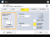 2 | 시작하는 참조 번호를 입력하십시오. ![]() <시작번호>의 입력 필드에 숫자 키를 사용하여 입력하십시오. |