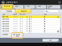 1 | <복사/인쇄> <작업이력>을 누릅니다. |