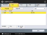 개인 인증 관리를 사용할 때 사용자가 <상황확인> 화면에서 다른 사용자의 작업에 대해 조작하지 못하도록 제한할 수 있습니다. <인증 사용자 이외의 작업 조작 제한> |