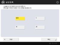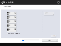 기기 보안을 강화하려면 사용자 인증을 사용하는 시스템에서 기기를 사용합니다. ![]() 이 기기는 사용자 인증을 로그인 서비스로 사용하는 것으로 설정되어 있습니다. 자세한 내용은 개인 인증 관리 설정 구성하기을 참조하십시오. ![]() <사용자 인증 사용>을 <설정>으로 누르고, 사용할 로그인 방법으로 <설정>을 누른 다음, <다음화면>을 누릅니다. 사용자 인증을 사용하지 않는다면, <사용자 인증 사용>를 위해 <해제>를 누르고 <확인>를 누른 후 6단계로 가십시오. ![]() 기기에 등록된 "관리자" 사용자 외에 관리자가 없는 경우 다음 설정을 지정합니다. ![]() "관리자" 사용자를 비활성화하고 새로운 관리자를 등록하여 보안을 강화하려면 <예>를 누릅니다. <관리자 등록>에 <사용자명>과 <비밀번호>를 입력하고 <확인>을 누릅니다. 필요에 따라 <이메일 주소>, <부문 ID>, <표시명>을 지정합니다. 자세한 내용은 로컬 장치에 사용자 정보 등록하기을(를) 참조하십시오. 다음에 로그인하면 "관리자" 사용자가 비활성화됩니다. "관리자"로 작동하려면 <아니오>를 누릅니다. ![]() ![]() 로그인 화면 표시 타이밍을 선택합니다. <기능 선택시 표시>를 선택한 경우 <기능>을 누르고 로그인 화면을 표시할 기능을 선택한 뒤 <확인>을 누릅니다. 또한 로그인 화면을 표시할 <설정/등록> 화면에서 설정 항목을 선택합니다. <심플 로그인> 및 <키보드 인증>에 <해제>를 선택한 경우 <확인>을 누릅니다. 6단계를 진행합니다. <심플 로그인> 또는 <키보드 인증>에 <설정>을 선택한 경우 <다음화면>을 누릅니다. ![]() ![]() 로그인 화면에서만 숫자키 입력을 통해 인증을 사용하려면 <설정>을 누릅니다. <심플 로그인>에 <해제>를 선택한 경우 확인>을 누릅니다. 6단계를 진행합니다. <심플 로그인>에 <설정>을 선택한 경우 <다음화면>을 누릅니다. ![]() ![]() 그림 로그인으로 PIN 입력을 강제하려면 <설정>을 누르거나 입력을 강제하지 않으려면 <해제>를 누르고 <다음화면>을 누릅니다. ![]() ![]() 사진 로그인을 사용하며 인쇄에 적합한 설정 구성을 원하는 경우 <설정>을 누릅니다. 인쇄 강제 보류가 활성화되고 사용자 등록은 컴퓨터에서 인쇄 데이터를 사용하도록 설정되며 사용자의 인쇄에 적합한 로그인 화면이 기본으로 표시됩니다. 자세한 내용은 인쇄 강제 보류 설정 구성하기, <사용자 등록 방법>, <심플 로그인 화면의 기본 표시 변경>을(를) 참조하십시오. ![]() ![]() 그림 로그인 화면의 사전 설정 버튼의 수를 선택하고 <확인>를 누릅니다. | |
