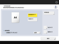 即使正確裝入紙張時,某些小標準尺寸也有可能無法正確偵測。在此情況下,請按下 <標準尺寸> 並選擇紙張尺寸。