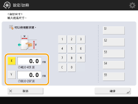 使用數字鍵按 <X> 或 <Y> 輸入各邊的長度。 ![]() 如果將按鈕 <S1> 的常用紙張尺寸註冊到 <S5>,只要按一下即可叫用。註冊尺寸不限的紙張(自訂尺寸紙張) | |