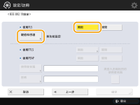 3 | 輸入使用者名稱和密碼。 按 <使用者名稱> 或 <密碼>,然後輸入資訊。如果您輸入 <使用者名稱> 的名稱,請停用 <與登入名稱相同的使用者名稱>。 如果要將 <使用者名稱> 設定為與步驟 3 相同的登入名稱,請按 <與登入名稱相同的使用者名稱>。 <確認> 會在輸入密碼並按 <確定> 時顯示。為了確認,請再次輸入密碼然後按 <確定>。 |