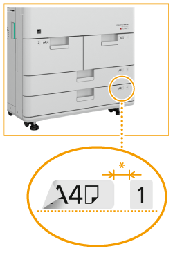 Attach the paper size label at the same height as the cassette number indicator, and approximately 5 mm to the left.
