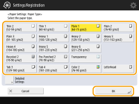 If the paper type loaded is not displayed, press <Detailed Settings> to select from a list.