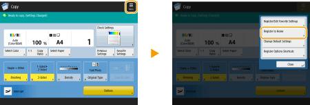 To register a Personal button, you need to log in with personal authentication management. Configuring the Personal Authentication Management Settings If you select <Device Login Authentication Information> for <Information Used for File TX/Browsing Authentication>, a password for a file destination is not stored in a Personal button. <Information Used for File TX/Browsing Authentication> For information on the maximum number of Personal buttons and Shared buttons that can be registered, see Management Functions. Personal buttons cannot be changed to Shared buttons, and vice-versa. To do so, recall the settings and register another button from <Menu>. Press and hold a button to change its name/comment or move/delete it. The same operations (changing the name/comment of a button or moving/deleting a button) can be performed from <Menu> on the <Home> screen. Customizing the <Home> Screen Personal buttons can be shared between multiple devices by synchronizing personalized data. List of Items That Can Be Personalized Settings that can be registered in Personal buttons/Shared buttonsFunctions and settings that can be registered in Personal buttons/Shared buttons are indicated below. Settings that can be registered in <Favorite Settings> for the <Copy> function Reducing Copying Operations <Fax> function settings of the machine Basic Operations for Sending Faxes Settings that can be registered in <Favorite Settings> for the <Scan and Send> function Useful Scanning Functions Settings that can be registered in <Favorite Settings> for the <Scan and Store> function Setting Screen and Operations for Scanning to Save Save locations for the <Scan and Store> and <Access Stored Files> functions Using Storage Space Shortcuts to the Basic Features screen for the <Fax/I-Fax Inbox> function Access to a server and the login password can be registered to Personal buttons/Shared buttons. This is convenient for skipping password entry when recalling the registered button. If you want to set password in the settings stored in the registered button, as you often import settings in a Personal button or Shared button to another machine and you want to prevent users from pretending to be other users, exclude a password when registering. Importing/exporting the registered buttonsYou can import and export the registered Personal/Shared buttons from the Remote UI. Importing/Exporting All Settings The Personal buttons/Shared buttons of imageRUNNER ADVANCE series devices that have the Quick Menu function can be imported/exported as Personal buttons/Shared buttons. |