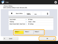 ![]() | You can recall the previously used copy settings. The details of the recalled setting can be changed before copying. |