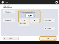 ![]() | You can enlarge or reduce by specifying magnification (%). Enlarging or Reducing by Specifying Magnification |