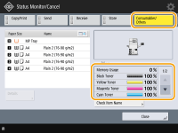 (Status Monitor), the Status Monitor screen is displayed, allowing you to check the toner level or other status indications.