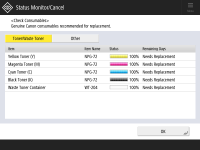 Checking the Detailed Status of Consumables