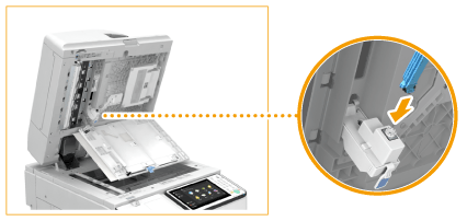 The machine has a function for stamping originals scanned with the feeder to indicate that they have already been scanned. This stamp is a consumable. When the stamp starts becoming faint, replace the stamp cartridge attached to the feeder.