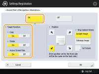 In <Target Function>, press <On> for each function that you want to apply this setting to.