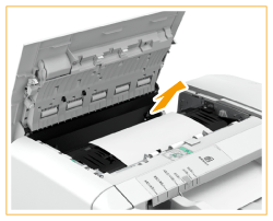 If an original is jammed in the feeder cover, gently pull it out in the direction of the arrow.
