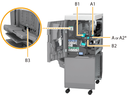 Paper jam locations are indicated by numbers such as A1, which are shown in the illustration below.