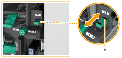 If the Puncher Unit-BG, or Puncher Unit-BH is attached, slide the guide (A1) to align it with the mark.