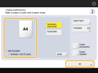 Vérifiez le format et le type de papier, puis appuyez sur <OK>.