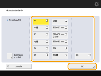 Se appare una schermata diversa da quella in cui si specificano il formato e il tipo di cartaSe appare un messaggio che richiede di regolare la guida della carta, regolare nuovamente la larghezza della guida e premere <OK>. |