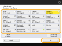 il pulsante in cui è stato registrato il tipo di carta per le buste