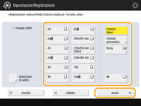 1 | Premere <Formato personalizz.>. ![]() Il formato della carta può essere specificato tramite <Formato libero>, che elimina la necessità di inserire le impostazioni relative al formato. Specificare <Formato libero> quando si carica carta dal formato sconosciuto da utilizzare per la copia o quando il formato della carta è già registrato nel driver della stampante. |