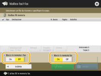 Selezionare <Mailbox RX memoria> e impostare <Blocco in memoria fax> su <On>.